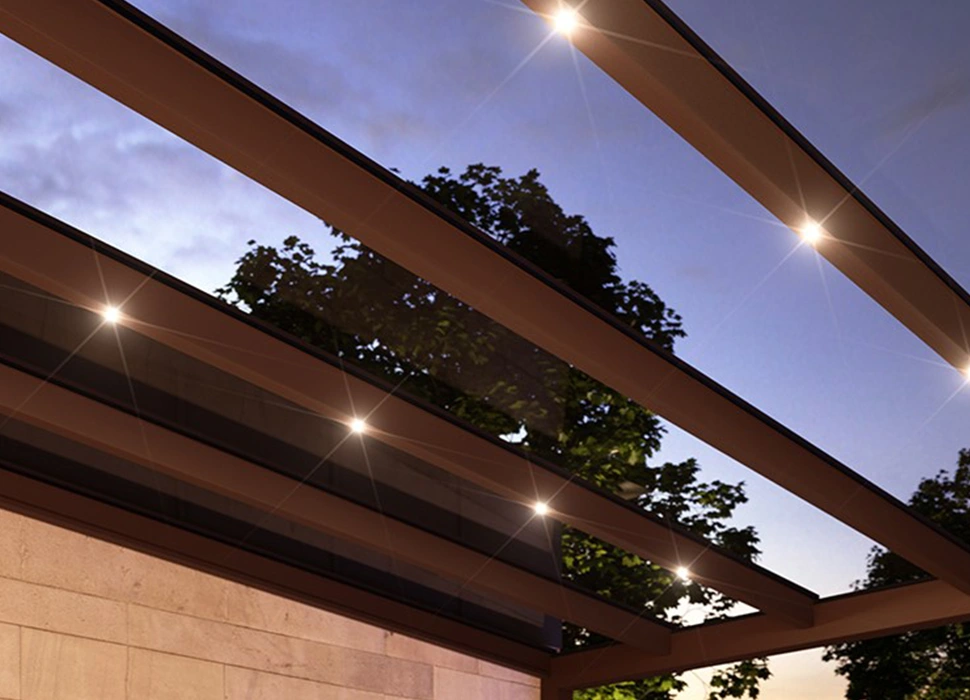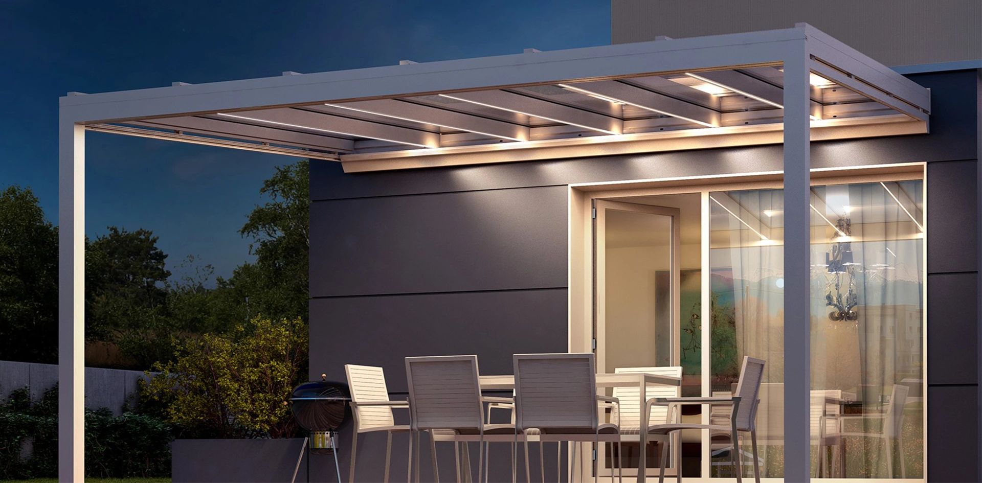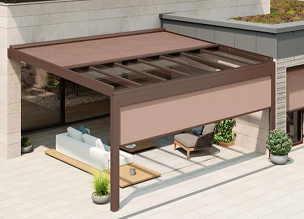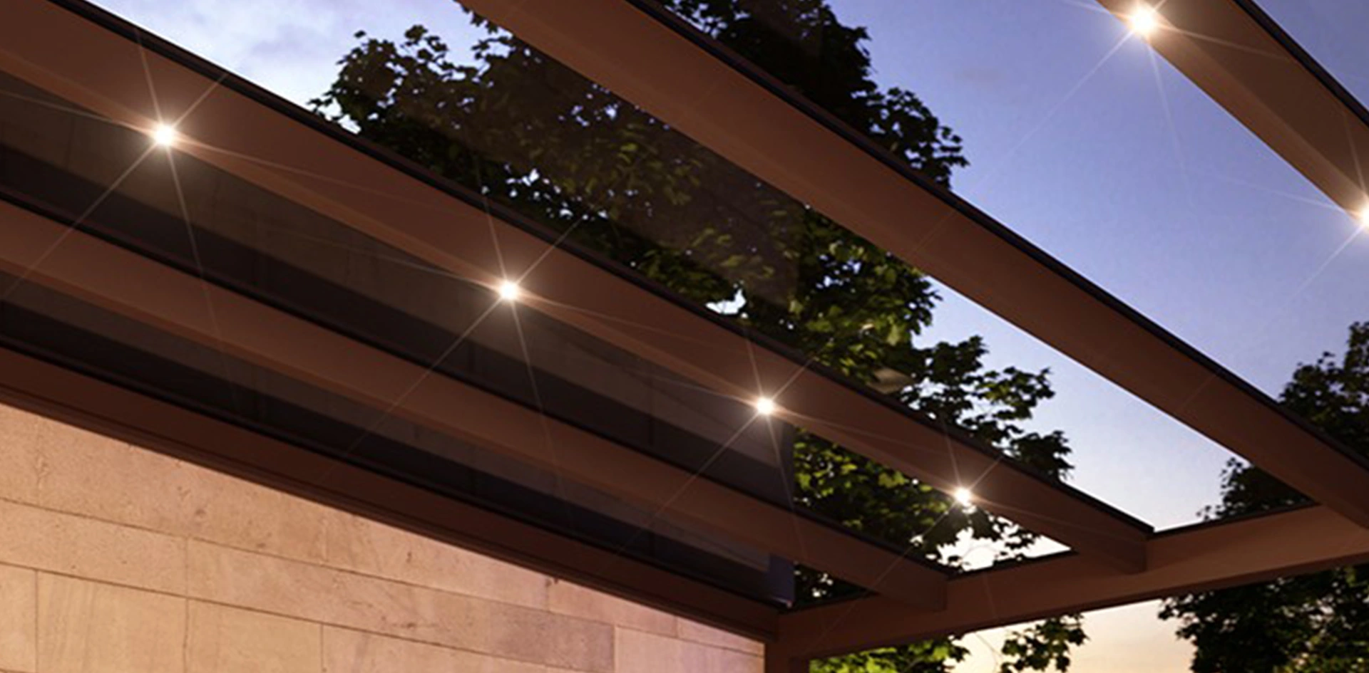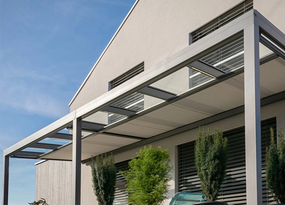 Das Glasdach ist komplett wasserdicht und von oben kann kein Wasser an die Möbel gelangen. Zusätzlich bieten Zusatzelemente für die Seiten noch mehr Wetterschutz.