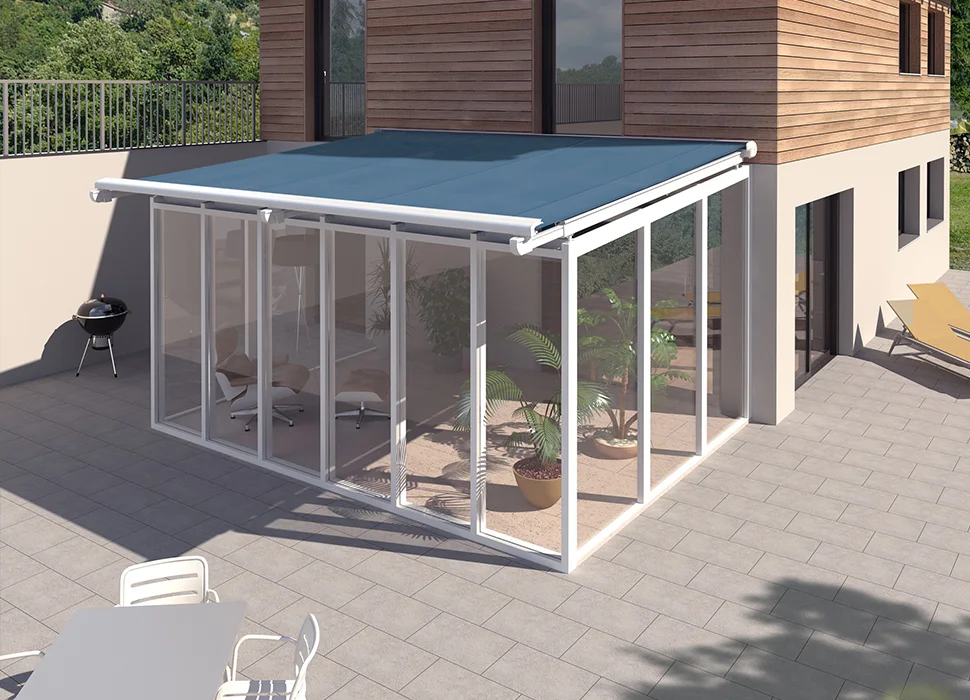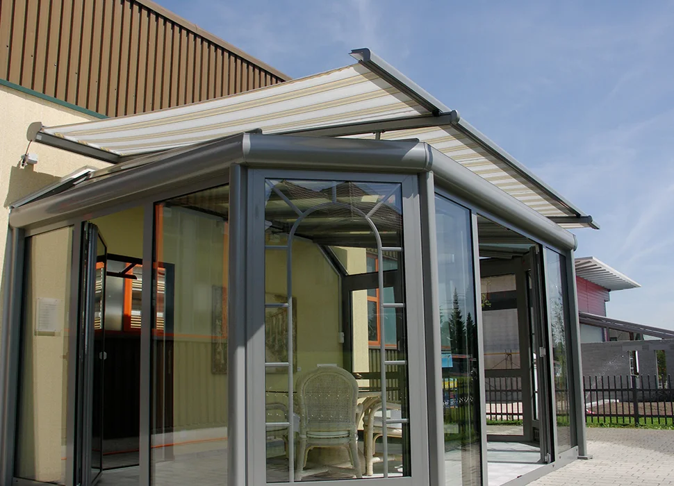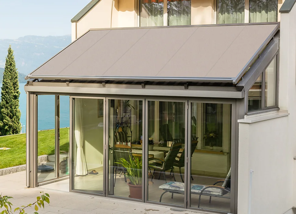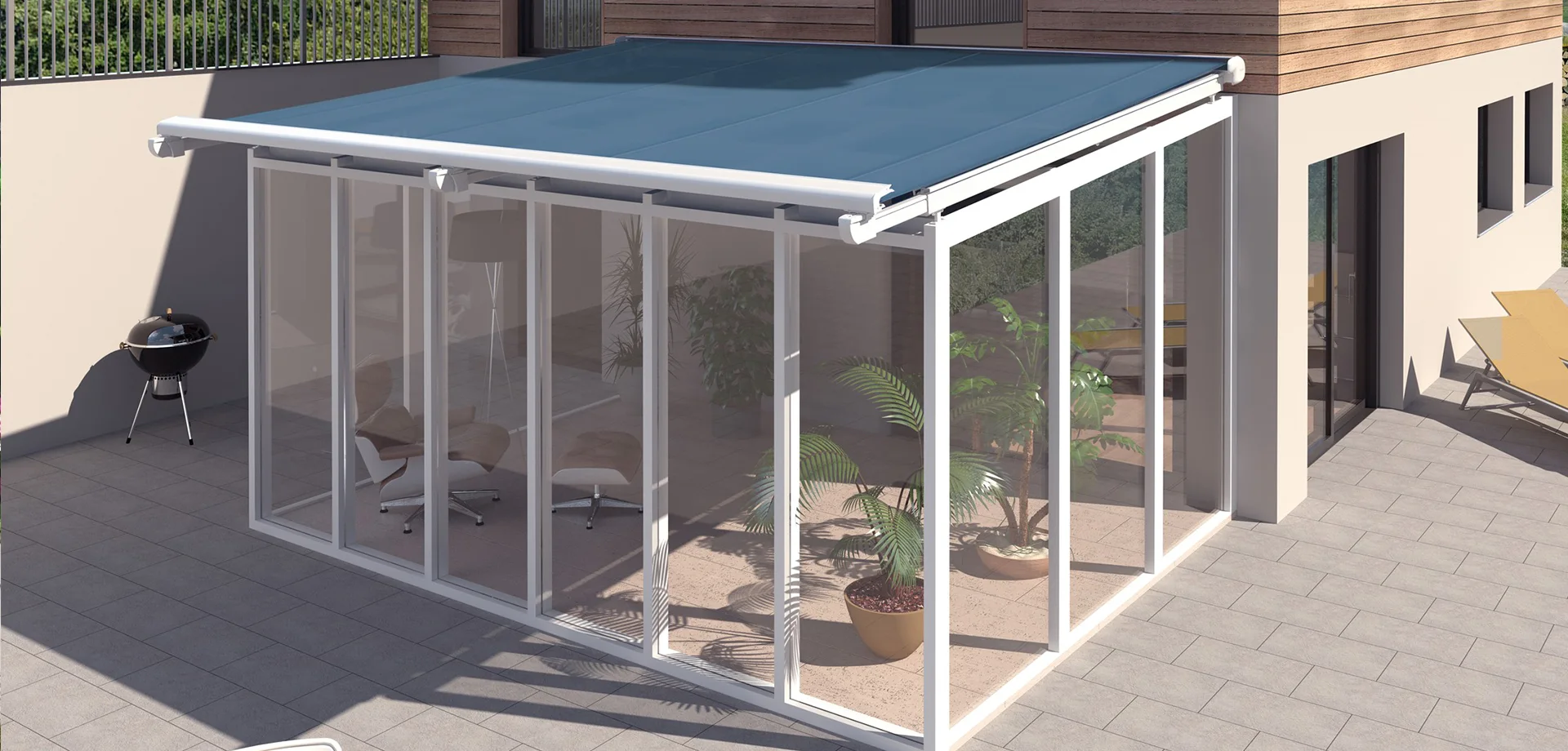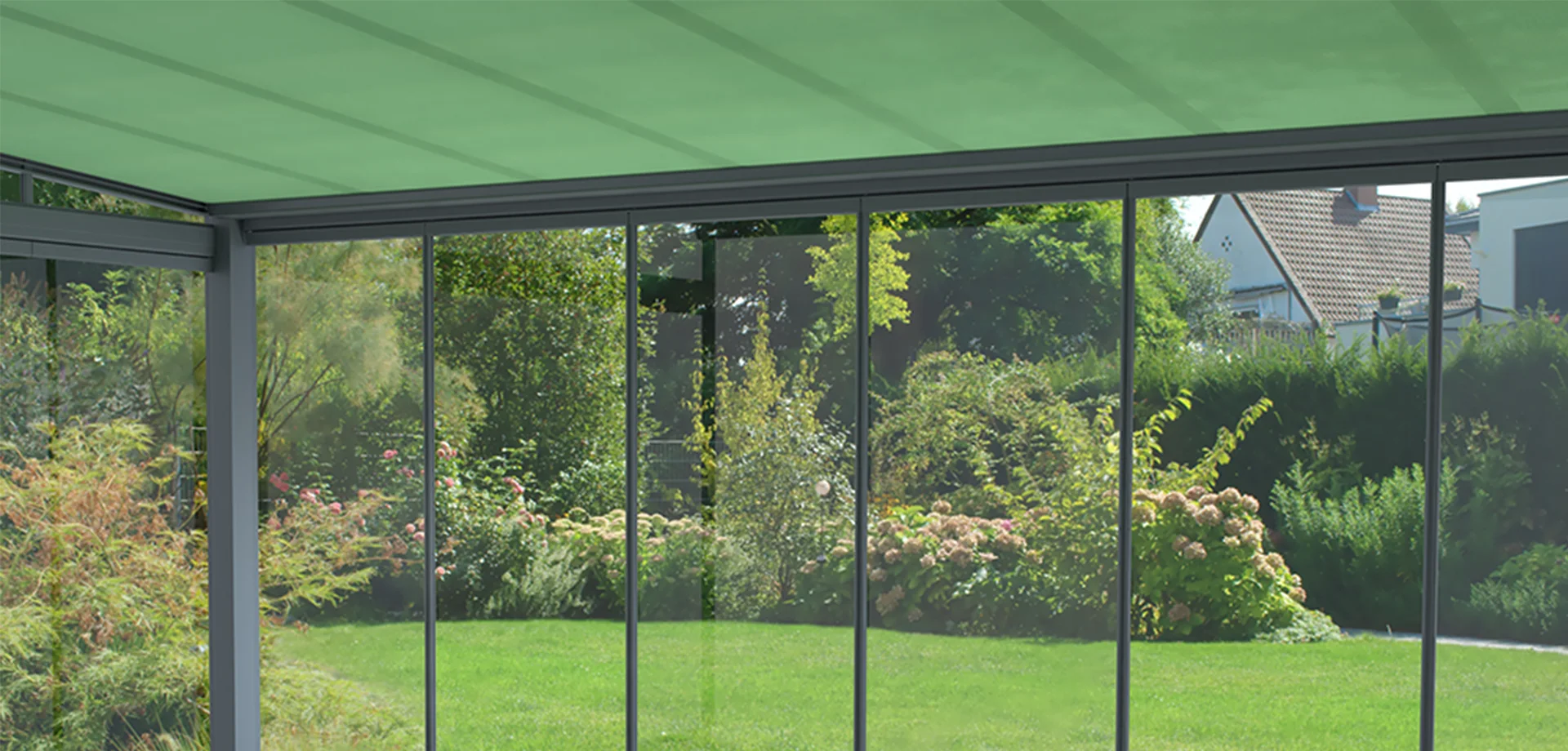 Unterglas- oder Überglasmarkise mit ZIP-System (Reißverschlusstechnik)
