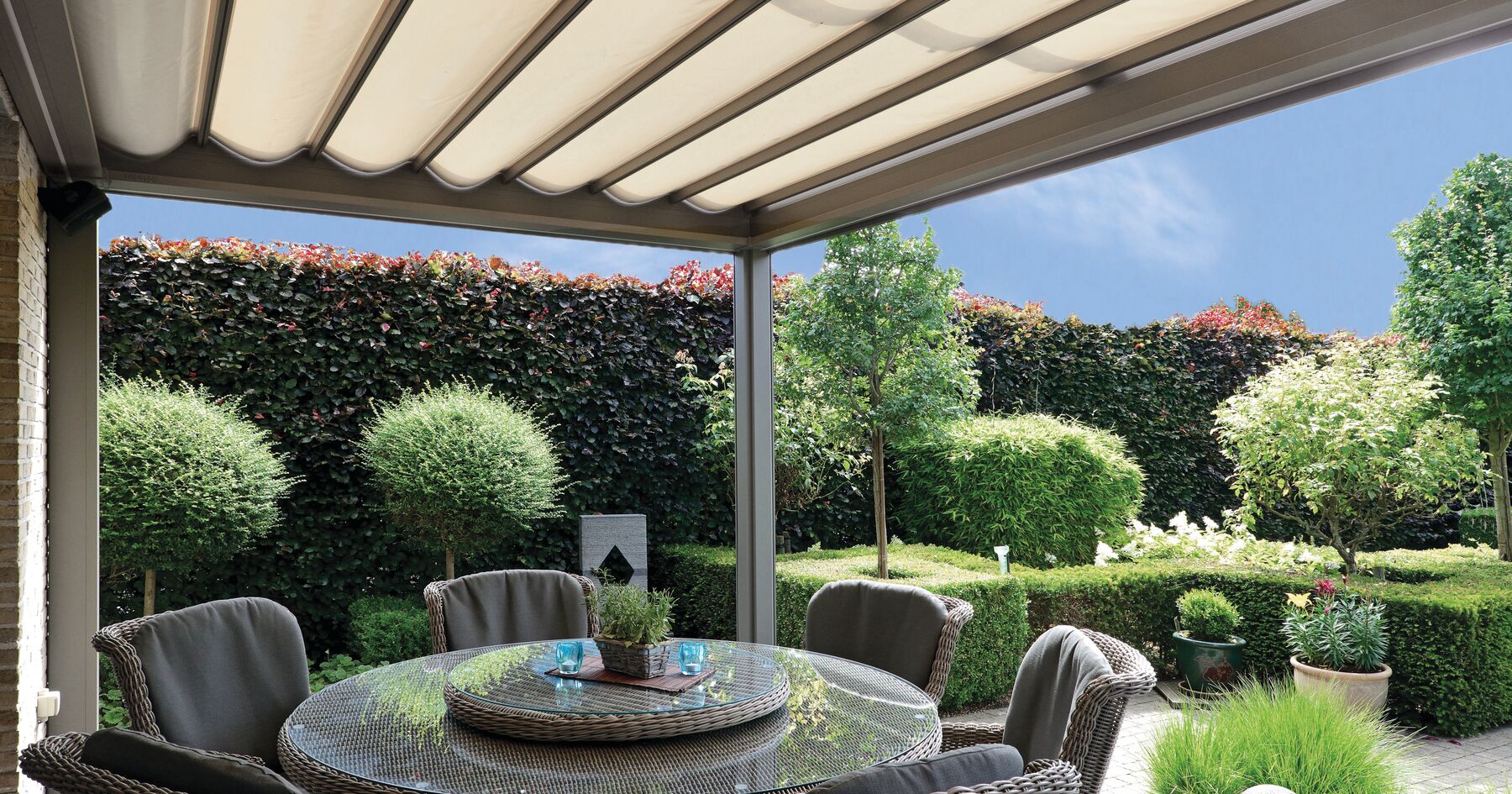 Mediterranen Charme bietet besten Schutz gegen Hitze, UV-Strahlen und schlechtes Wetter